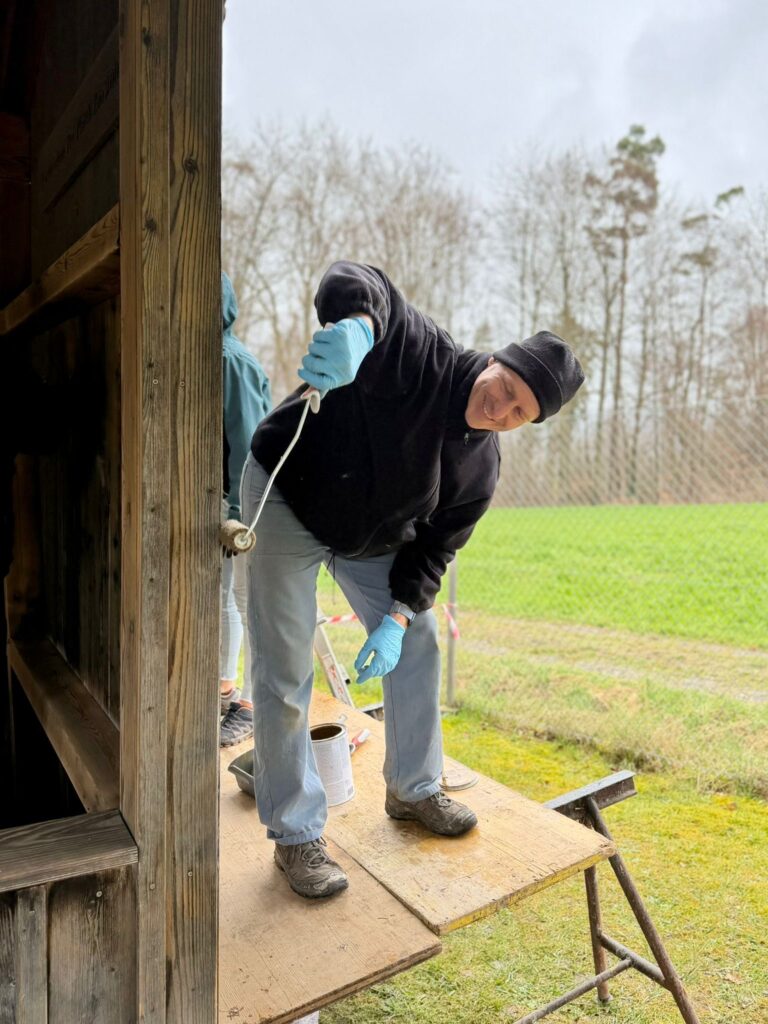 Das Kiwanis-Team (Thomas Müller, Patrik Riebli, Markus Bachmann, Vico Zahnd und Marcel Jaeger) unter der Führung von Patrick Guarisco sowie der Mithilfe von einigen Kindern, hatte in einem intensiven Tag den Unterstand abgeschliffen und lasiert wie auch den Weg dahin neu gebaut.